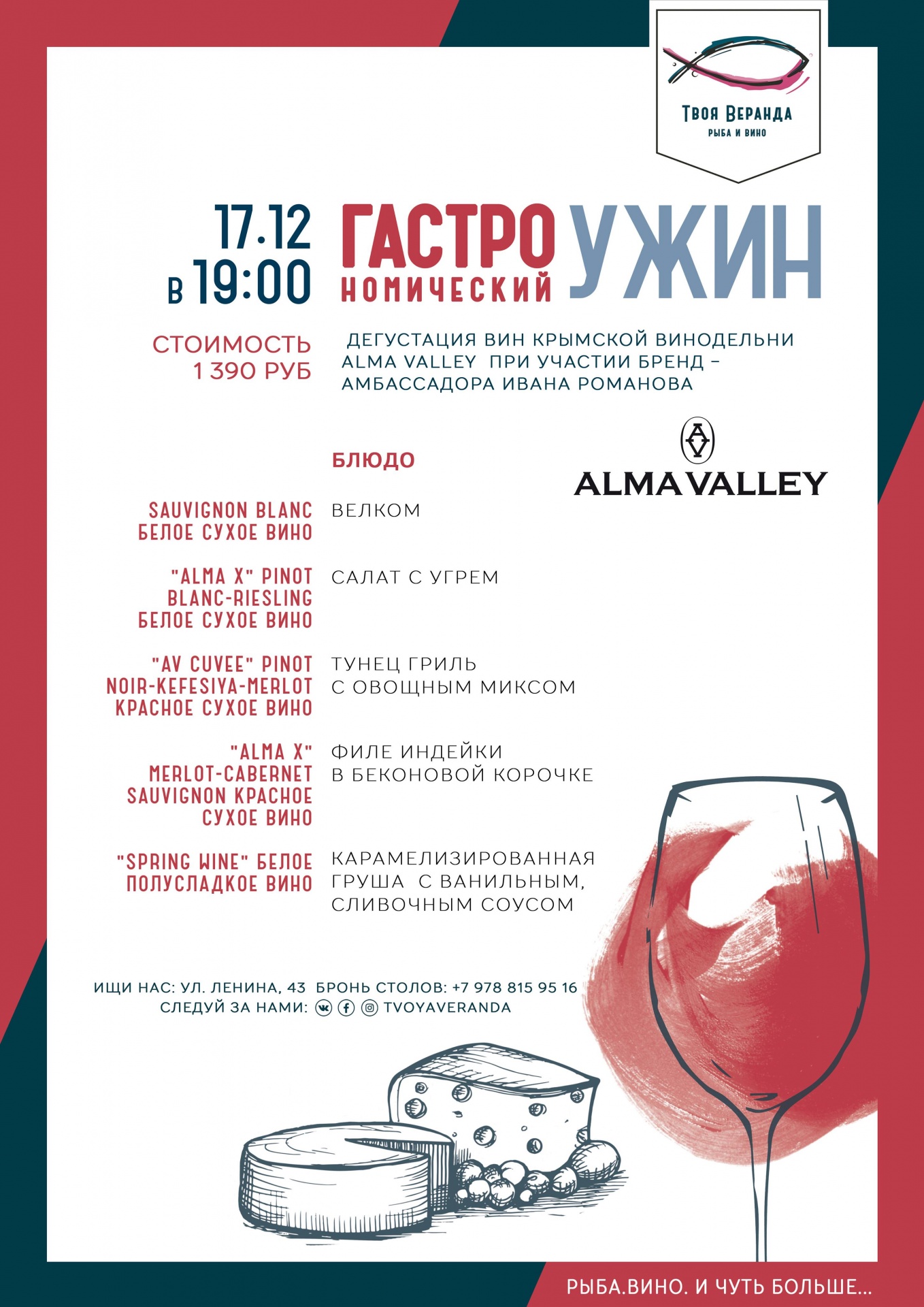 Гастрономический ужин и дегустация крымских напитков «ALMA VALLEY» на Твоей Веранде. Рыба и Вино - интересно, познавательно и очень вкусно!