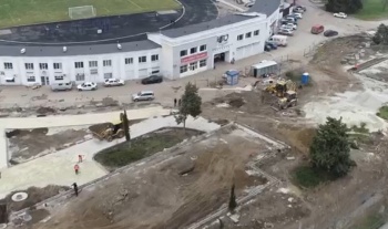 Общая площадь участка составляет 2 гектара. Проектом предусмотрено обустройство 2 парковок по 1 тысяче квадратных метров каждая. Они будут расположены по бокам от центра. На одной из площадок, отведенных под парковки, выполняют уплотнение грунта и со следующей недели планируют готовить щебеночное основание под укладку первого слоя асфальта.