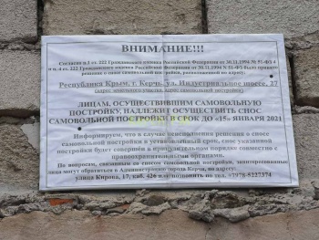 В Керчи разыскивают собственника 30-летнего самостроя. За 30 лет никто так и не выяснил, кому принадлежит недостроенная часть по Индустриальному шоссе, 27. На самом видном месте вывешен плакат с угрозами принудительного сноса в присутствии полиции, - передает Керчь.ФМ.