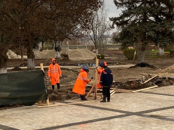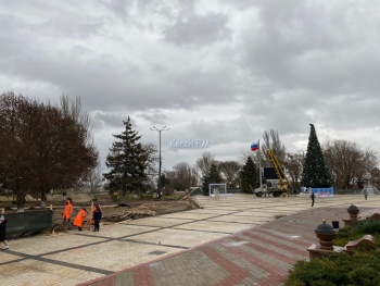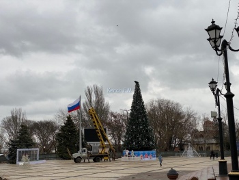 В Керчи 25 декабря на площади Ленина сильный ветер повалил забор и погнул верхушку на главной новогодней елке. Рабочие восстанавливают забор, за которым проходит реконструкция сквера, - передает Керчь.ФМ