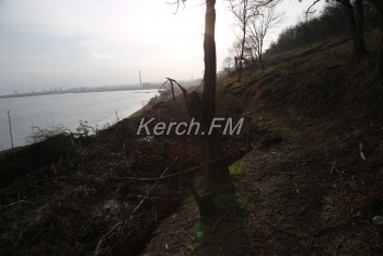 Также, после осадков заметно осела земля на месте большого оползня, который засыпали в начале работ. Эту территорию всю перекрыли ветками.