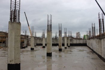 В одном из корпусов ведется заливка плиты перекрытия первого этажа. В основание уже залито около 2 тысяч кубометров бетона - это первоначальные трудоемкие работы.