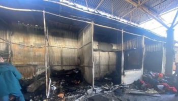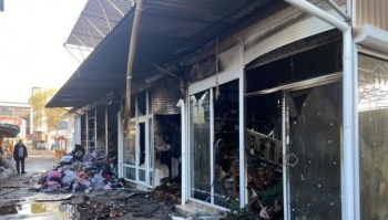 Огнем уничтожены торговые павильоны и находившиеся там товары. Общая площадь пожара и причина возгорания пока неизвестны.