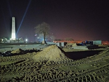В третьих, придумали благоустроить площадь на горе, вернее, тот участок, который не вошел в комплекс «Обелиск Славы». С августа за 5 месяцев обгрызли асфальт, разровняли, часть уложили остатками плитки. И все. Нет, не все. Еще достали останки из могилы. Назвали это «находкой», хотя о том, что там была часовня и захоронение гласила памятная плита, исчезнувшая как раз перед реставрацией.