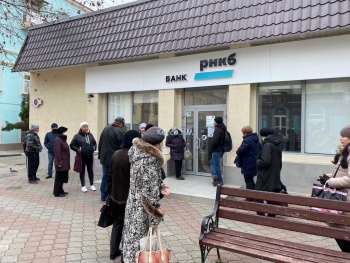 В Керчи 11 января у банков образовались очереди из людей. Люди с самого утра занимают очередь у отделений банков. Стоит отметить, что дистанцию практически никто не соблюдает, - передает Керчь.ФМ.