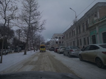 В Керчи 18 января центральные дороги плохо расчищены от снега. Стоит отметить, что и посыпаны специальной смесью дороги частично.