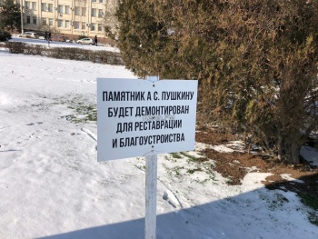 В Керчи на городской набережной планируют демонтировать памятник Пушкину,  - передает Керчь.ФМ. Демонтаж необходим для реставрации и благоустройства. Соответствующее объявление размещено рядом с памятником на табличке.