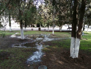 В Керчи 25 января в сквере Пушкина произошел порыв водовода. Вода вытекает из-под земли на газоне. Об этом Керчь.ФМ сообщили постоянные читатели.
