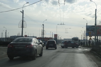 На месте происшествия работают сотрудники ГИБДД. На 15:00 часов движение транспорта было затруднено.