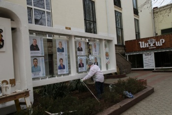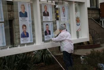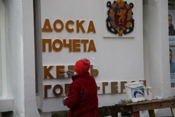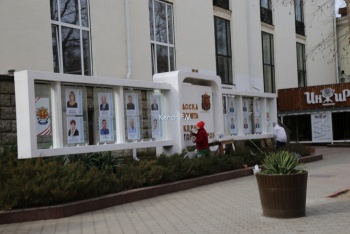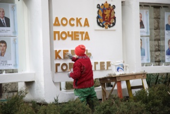 В Керчи 27 января на улице Ленина начали реставрировать доску почета. Рамку и буквы с самого утра красят рабочие, - передает Керчь.ФМ.