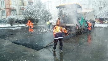 В Керчи 6 февраля, во время пока шел снег, укладывали асфальт еще в одном реконструируемом дворе по по ул. Кирова в районе домов № 107, № 109, № 108 Об этом Керчь.ФМ сообщили постоянные читатели