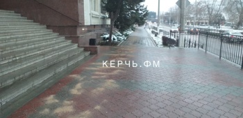 Утром 8 февраля в Керчи оказались обледеневшими тротуары и автобусные остановки, некоторые дороги.