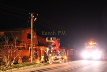 Бригада Керченского РЭС незамедлительно приступила к устранению аварии на линии электропередач. На место прибыли 6 единиц техники, несколько аварийных бригад. От генератора на время проведения работ подключили световой столб.