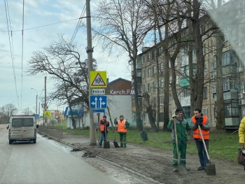 В Керчи коммунальщики убирают обочины дорог