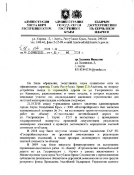 Близятся к завершению работы по Гаспринского, по крайней мере уже асфальт положили на протяжении всей улицы от Голубиной до Киммерийского шоссе. Вопросы остались только в месте примыкания к Голубиной. Так как там должен быть оборудован разъезд, а не просто обрыв дороги. И чем ближе к концу строительства, тем отчетливее видно, что владельцы земельных участков под строительство жилых домов льготными категориями керчан остались без съездов с Гаспринского к своим улицам. На вопрос отца многодетного семейства как ему вести строительство если съезда нет, администрация ответила, что ничего сделать уже невозможно, так как экспертиза уже утвердила, - передает Керчь.ФМ.