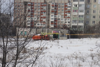 Рядом находимся магазин, пристроенный к десятиэтажному дому. Яма не была видна из-за снега.