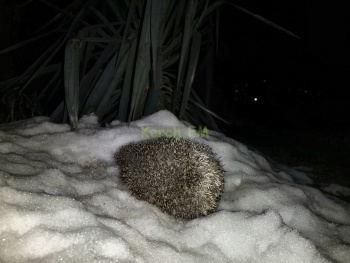 Керченский ежик проснулся во время салюта. И если летом или осенью колючих соседей видеть привычно, то зимой на фоне снега они выглядят весьма экзотично. Такого любителя праздника мужчин сняли керчане на КУОРе, - передает Керчь.ФМ.