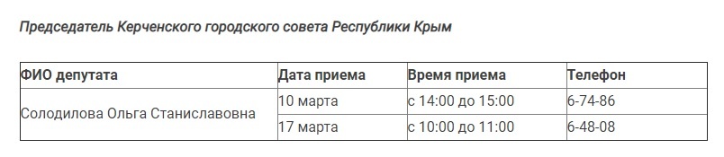 Пресс-служба горсовета Керчи сообщает график приема граждан в телефонном режиме депутатским корпусом Керченского городского совета 2 созыва в марте 2021 года, - передает Керчь.ФМ.