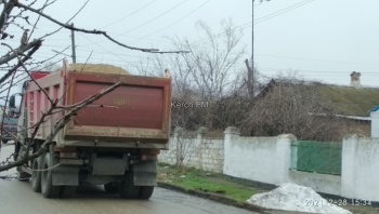 «Вас беспокоят жители г.Керчь улицы Котовского, Попова, Шевякова. Вот такие машины ездят и днем и ночью по нашим улицам, да не просто ездят, а летают груженные. Посмотрите во что они превратили дорогу (фото прилагаю).Что делать жителям? Район у нас тихий спокойный, живет очень много пожилых людей, а машины не дают покоя ни днем, ни ночью .От этих машин начали разрушаться дома, все дома постройки 50-60 годов. Что делать нам, кто нам отремонтирует дома, подъезды к дому?», -написали читатели
