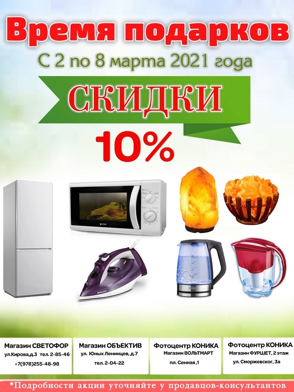 Скидки в магазинах КОНИКА и СВЕТОФОР,