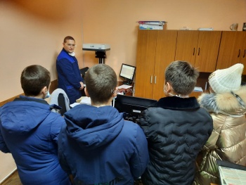 После знакомства с выставкой ребятам была предложена обзорная экскурсия по архиву. Особый интерес у семиклассников вызвал планетарный сканер, работу которого им продемонстрировал архивист отдела учета сохранности и научно-справочного аппарата Д.В. Демидов.