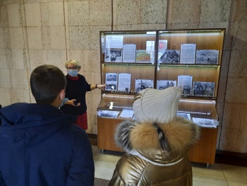 Одними из первых муниципальный архив посетила группа учащихся 7-Б класса гимназии № 2 им В.Г. Короленко, которые пришли ознакомиться с выставкой «Он воевал в Афгане…», посвященной участнику боевых действий О.И. Черепину.
