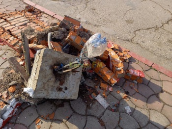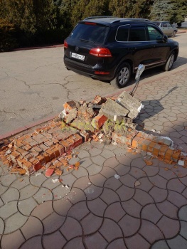 «О чем вы пишете? Как была разбитая кирпичная тумба под столбом, так она и валяется. Это именно об нее мужик навеселе споткнулся и лицом прямо на бутылку с проводами полетел. Бахус спас его от инвалидности, может он же и был причиной того, что развалины не заметил», - подписали фото керчане.