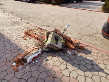 Восстановленная сегодня опора под электростолб оказалась не единственной разбитой перед сквером Мира. Возмущенные керчане после публикации шлют  в редакцию Керчь.ФМ фото еще одного разбитого экспоната.