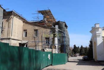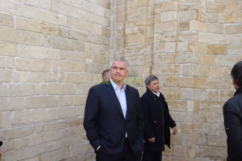 Глава Крыма Сергей Аксенов с рабочим визитом приехал инспектировать объекты строительства. После встречи Главу Крыма подняли на машине на Митридат, а оттуда своим ходом по отремонтированной, но никак не открытой для людей, Митридатской лестнице. Затем ему показали процесс реконструкции Романовской гимназии.