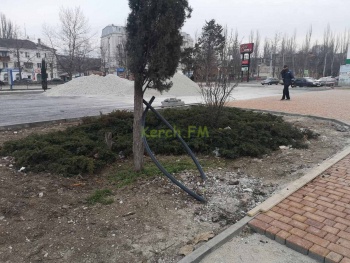 Журналисты Керчь.ФМ с этой же целью посетили две стройки по пути. Первой была общественная зона на стадионе им 50-Лет Октября. Там вчера, со слов рабочих, пытались вбить паспорт и случайно пробили электрокабель, обесточили роддом, жилые дома, школу. Кабель ведет к известному консолевскому дому по Курсантов, 20 и в обслуживании находится в дружественной структуре предприятии. Тем не менее, со стороны ПУДа, Лазурного, Мирошника паспорт объекта обнаружен не был. Возможно, место прокладки кабеля единственное возможное для установки конструкции.