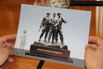 «Совместно с куратором города Ариной Новосельской мы обратились к московским архитекторам с просьбой разработать предварительный эскиз памятника. Сегодня передал афганцам образец. Предлагается создать постамент 2, 30-2, 50 м в высоту с изображением одного бойца или группы солдат из 3 человек. В свою очередь активисты организации представили свой проект памятника», - говорится в сообщении.