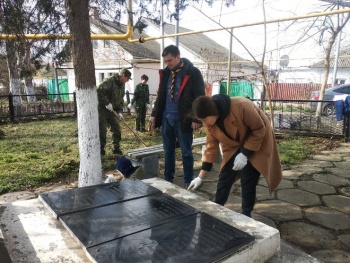 В этот раз добровольцы Керчь-Еникальского общества истории и древностей - представители организации Российских юных разведчиков дружины "Керчь" и военно-патриотического клуба "Эльтиген" провели субботник на братской могиле советских воинов и мирных жителей на ул. Фабричной (район Аршинцево).