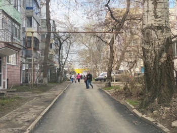 Рабочие уложили новый асфальт. Стоит отметить, что он появился только у нескольких подъездов.