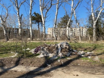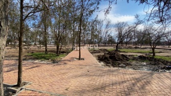 Отметим, что многие деревья не вырубили, а просто уложили около них плитку. Работы движутся, но если посмотреть вокруг, то кроме новой красоты осталась та же разруха. Напротив парка огромная куча мусора и заброшенная территория. Кроме этого, дорога находится в ужасном состоянии и когда асфальтировали парковку, дорогу там не сделали.