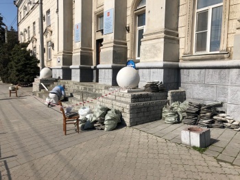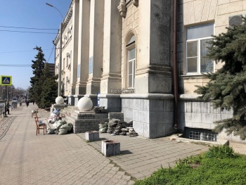 Так, вход в здание оградили сигнальной лентой. Сейчас здесь проходят работы реконструкции входной группы. По словам рабочих, ремонт также сделают и внутри, здесь обновят коридоры.