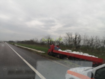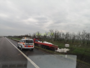 Сегодня, 3 апреля, на Тавриде под Горностаевкой произошло ДТП. В результате аварии фура с сыпучими материалами вылетела в кювет и легла на бок, - передает Керчь.ФМ.