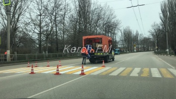 В Керчи 10 апреля на дорогах обновляют разметку на пешеходных переходах, - передает Керчь.ФМ. Так, утром на путепроводе по ШГС перекрывали по одной полосе дороги на время проведения работ.