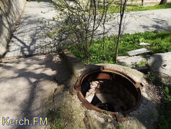 Этот люк находится за домом на Свердлова, 86, где магазины. Люди идущие в магазин или с магазина, спускаясь или подымаясь по лестнице, которая рядом с открытым люком, могут спотыкнуться и улететь прям туда, приземлится на «мусорную подушку безопасности. Недавно здесь благоустраивали, но до люков не добрались», — пишет керчанин.