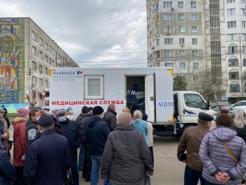 В Керчи 15 апреля на Ворошилова, на парковке за супермаркетом, проводят выездную вакцинацию. Всего врачам выдали 100 доз Спутник V. Привиться смогут только те, кто был ранее записан в поликлинике. В 9:45 часов, около машины собралось много людей, - передает Керчь.ФМ.