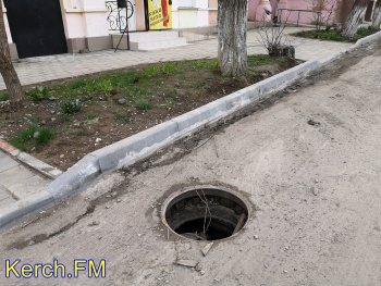 При повороте с ул. Орджоникидзе на Бульвар Пионеров, в темное время суток колесами можно встретить открытый люк на проезжей части, а ногами можно провалиться, — передает Керчь.ФМ.
