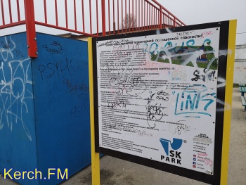 Стоит отметить, что и сами спортивные элементы парка и фасад прилегающего здания расписан "нехудожниками". Согласно п. 3.2.4 Правил благоустройства Керчи такие надписи должны быть удалены не позднее чем на следующий день после их нанесения.