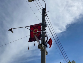 В Керчи 26 апреля часть улицы Кирова украсили праздничной атрибутикой к 9 мая, - передает Керчь.ФМ.
