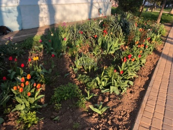 Отметим, также красивые аллеи тюльпанов можно встретить у КГМТУ, гостиницы завода «Залив», под окнами местных жителей. Также много тюльпанов цветет на кольце на КУОРе.
