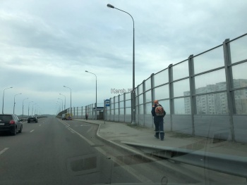 Также в районе кольца на "КУОРе" красят вазоны. Рабочие убирают обочины дорог на путепроводе по ШГС