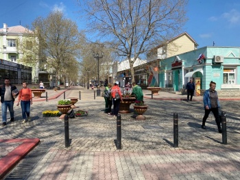 В Керчи 30 апреля на улице Ленина коммунальщики утроили субботник. Проходят работы по окраске лавочек и уборке сорняков. Для того, чтобы люди не садились на них до высыхания, рабочие наклеили надписи «окрашено», - передает Керчь.ФМ.