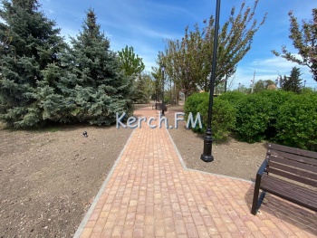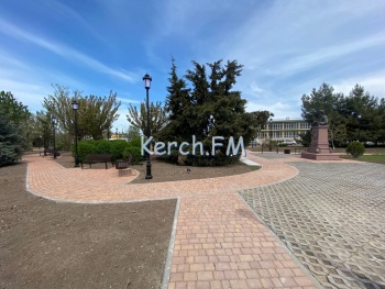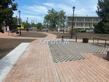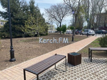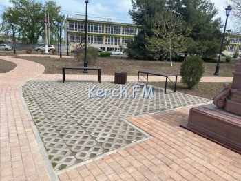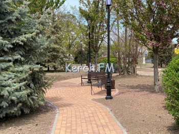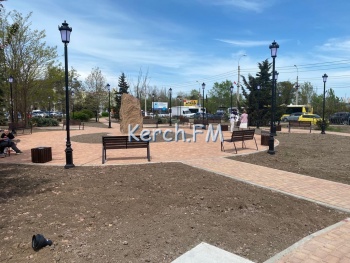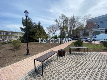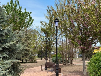 В Керчи открыли сквер Воссоединения. Работы завершили - установлены новые фонари и лавочки, вымощены дорожки. В сквере зацвели сакура, а вот на клумбах еще не появились цветы.