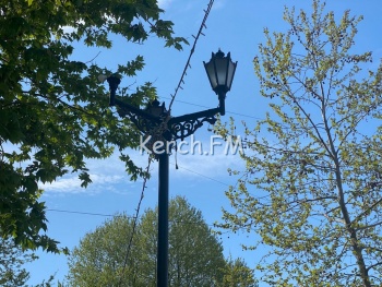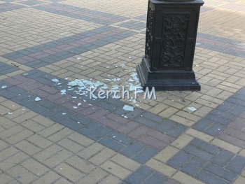 Ветер снес и разбил плафон на фонарном столбе в Керчи