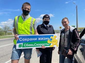 На въезде в город-герой Керчь молодые активисты, выстроившись вдоль проезжей части с хештегом «СбавьСкорость#сохраниЖизнь» и вооружившись дорожными знаками ограничения скорости 90, 60 и 30 км/час призвали водителей к необходимости выбора разумного скоростного режима.