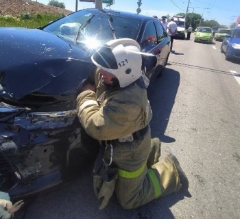 По прибытии спасатели выяснили, что произошло столкновение двух легковых автомобилей «Toyota rav 4» и «Toyota Camry». Сотрудники пожарной охраны оказали содействие работникам скорой медицинской помощи и ГИБДД, а также предприняли все необходимые противопожарные меры для предотвращения загорания в зоне ЧП.