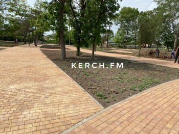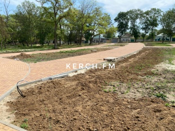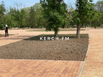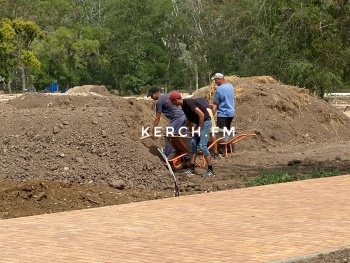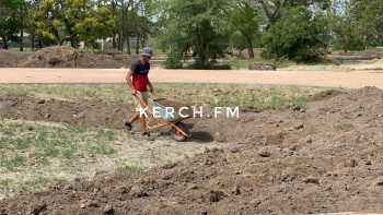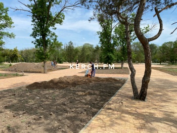 В Керчи продолжаются работы по благоустройству парковой зоны в районе Старого стеклотарного завода. Рабочие  засыпают в клумбы землю, - передает Керчь.ФМ.